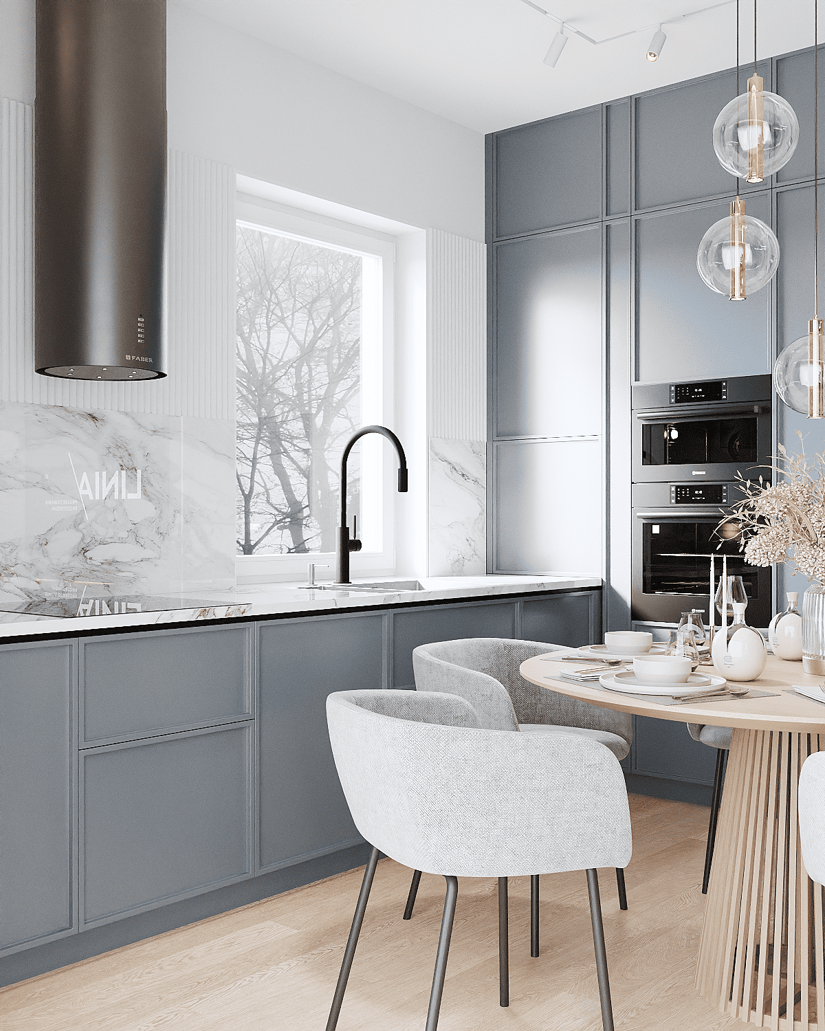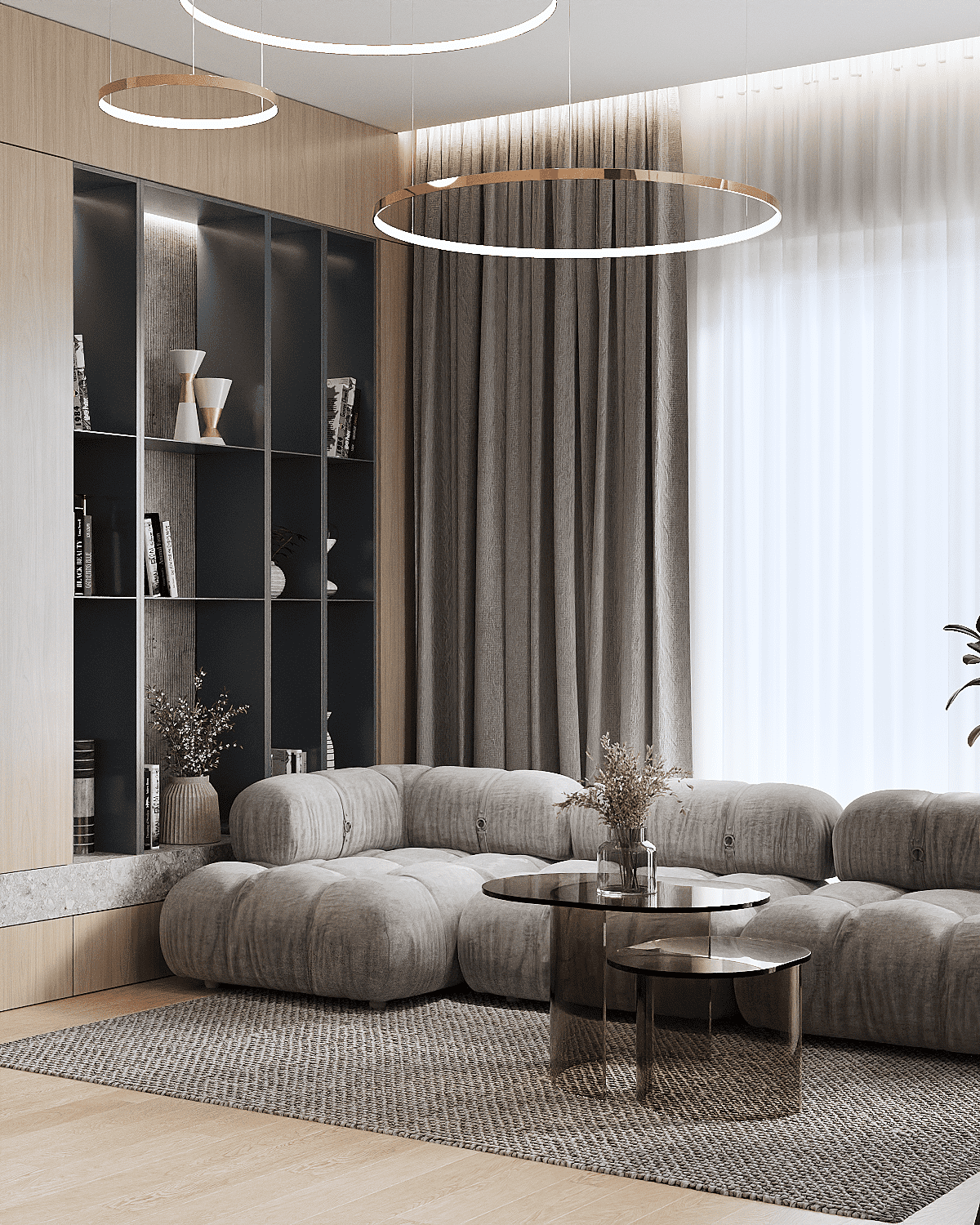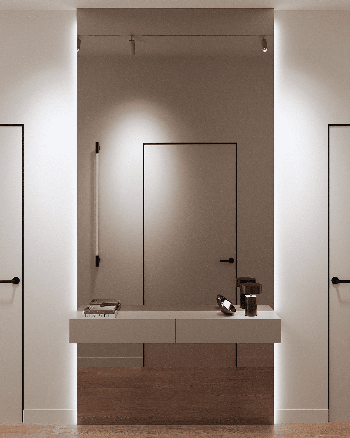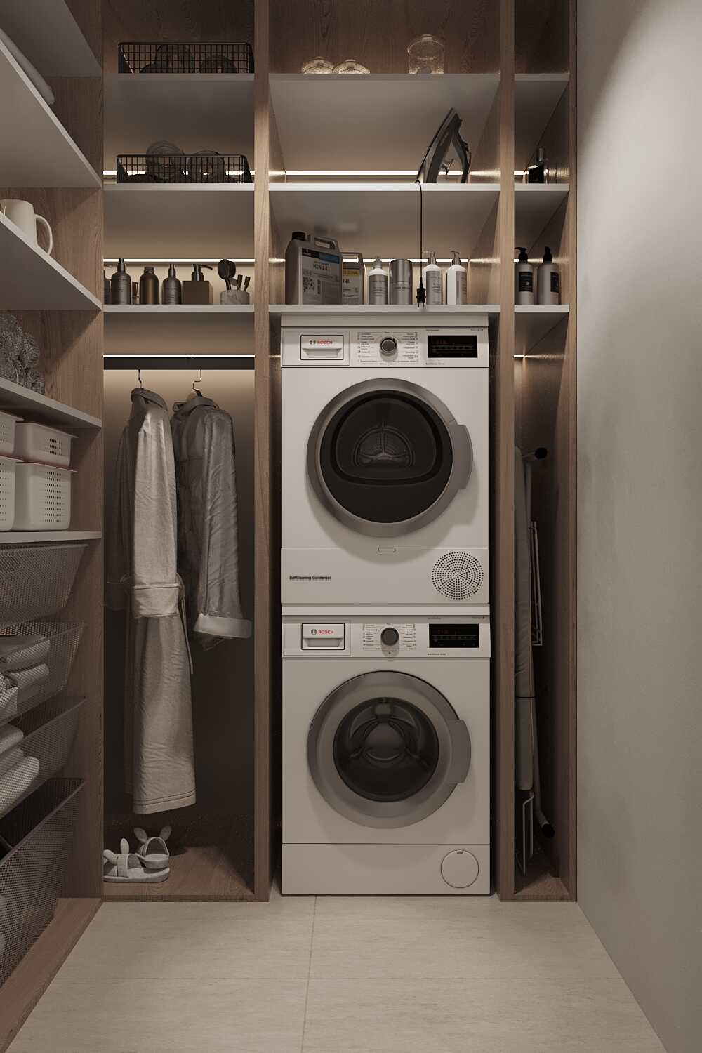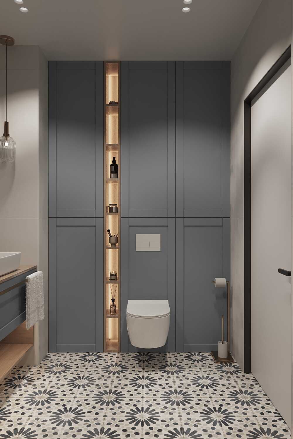 Zastosowaliśmy osłony na ścianę z geometrycznymi wzorami, które tworzą iluzję głębi i ruchu, dzięki czemu pomieszczenie wydaje się większe i bardziej dynamiczne. Poprzez odpowiednie rozmieszczenie mebli na wymiar i zaplanowanie stref (spania, pracy, przechowywania), stworzyliśmy wnętrze, które, mimo niewielkich wymiarów, jest w pełni funkcjonalne i ergonomiczne.
