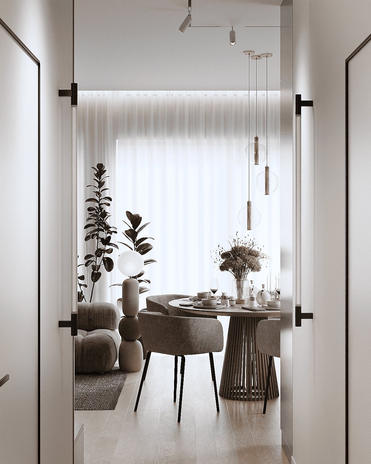 W odpowiedzi na to wyzwanie, kluczowym krokiem była zmiana układu funkcjonalnego wnętrz. Poprzez właściwe rozmieszczenie mebli oraz dopasowanie stref (do nauki, przechowywania, odpoczynku) do specyfiki każdego pokoju, udało się stworzyć optymalne wnętrza. Pokoje pozostały spójne, dzięki zastosowaniu wspólnego mianownika w projekcie, np. osłony na ściany w geometryczne wzory, czy jednakowe meble różniące się kolorystyką. W efekcie, każdy z pokoi stał się przestrzenią, idealnie dopasowaną do swojego właściciela, a jednocześnie cała strefa dziecięca stanowi spójną i harmonijną część domu.
