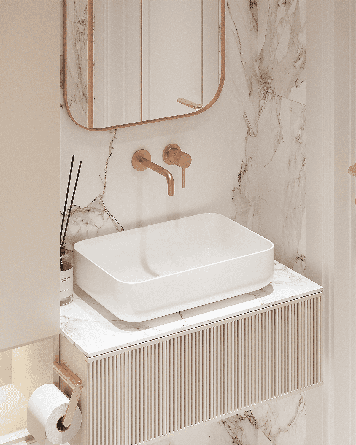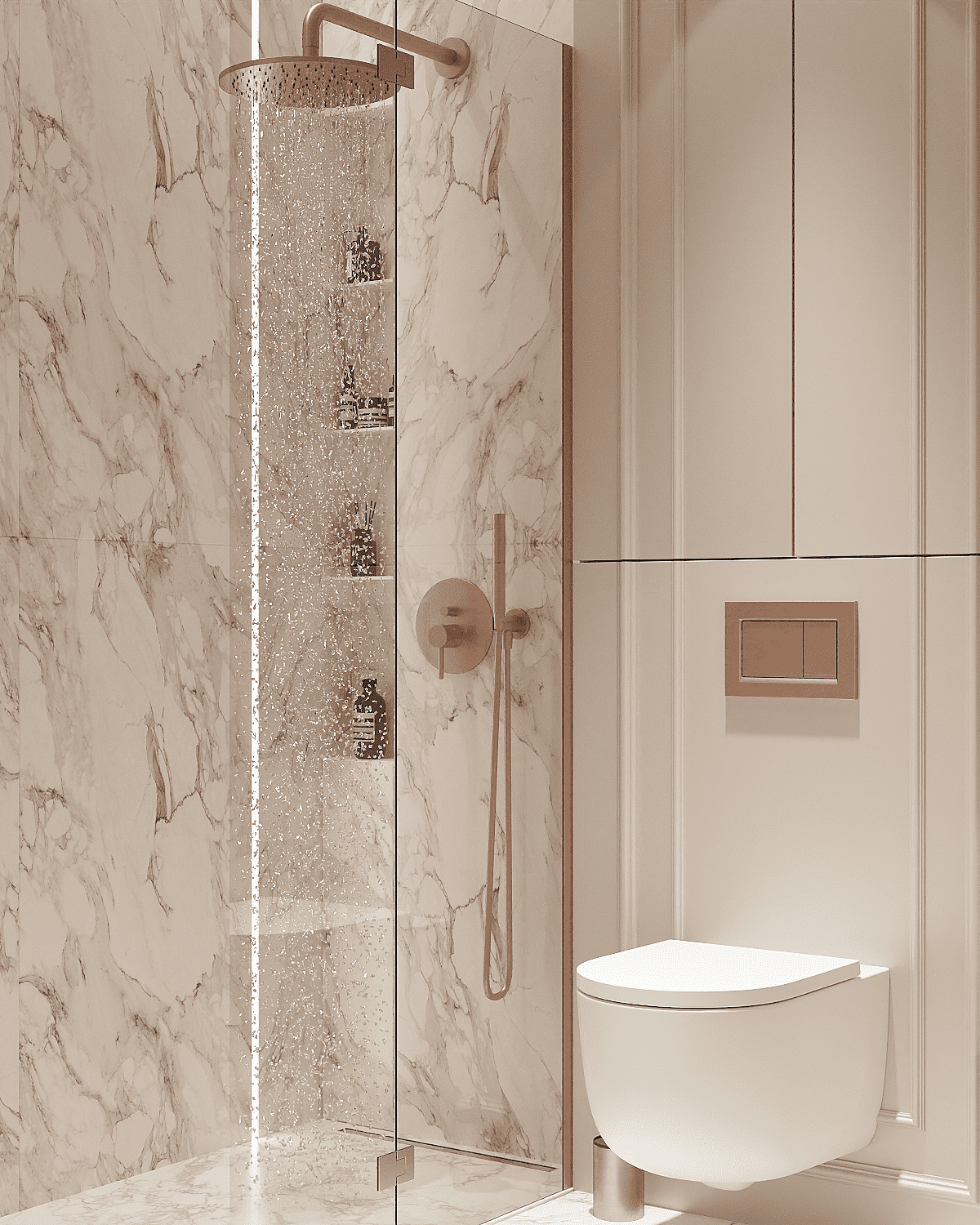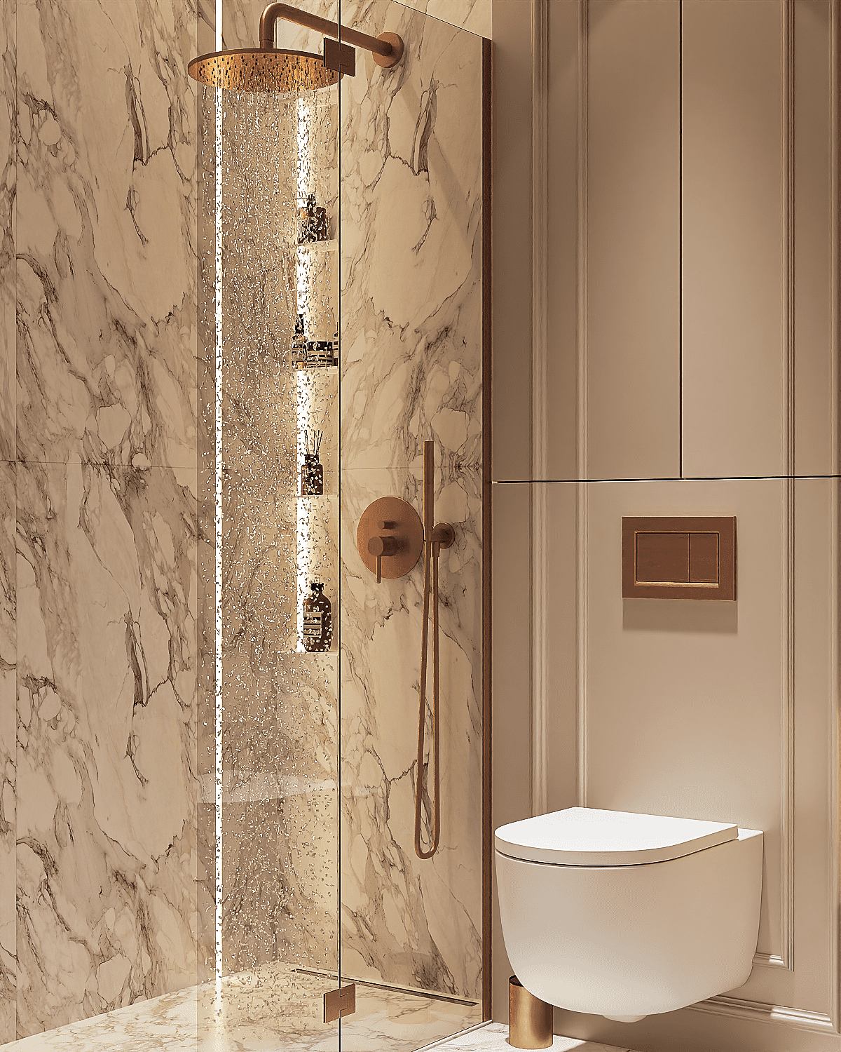 Aranżacja małej łazienki, która pomieści piec, w sposób estetyczny i funkcjonalny, bez naruszania wymogów technicznych dotyczących wentylacji.