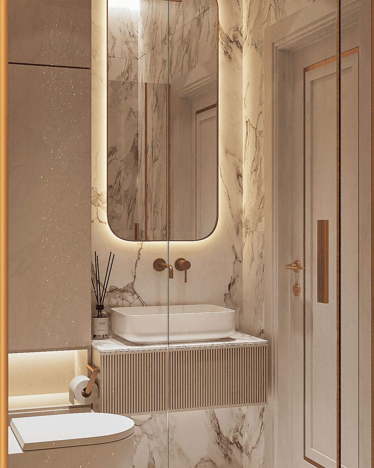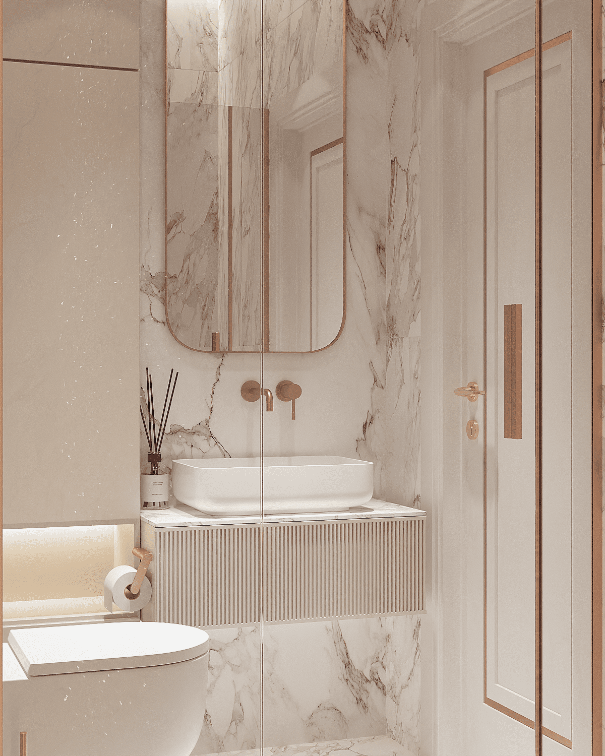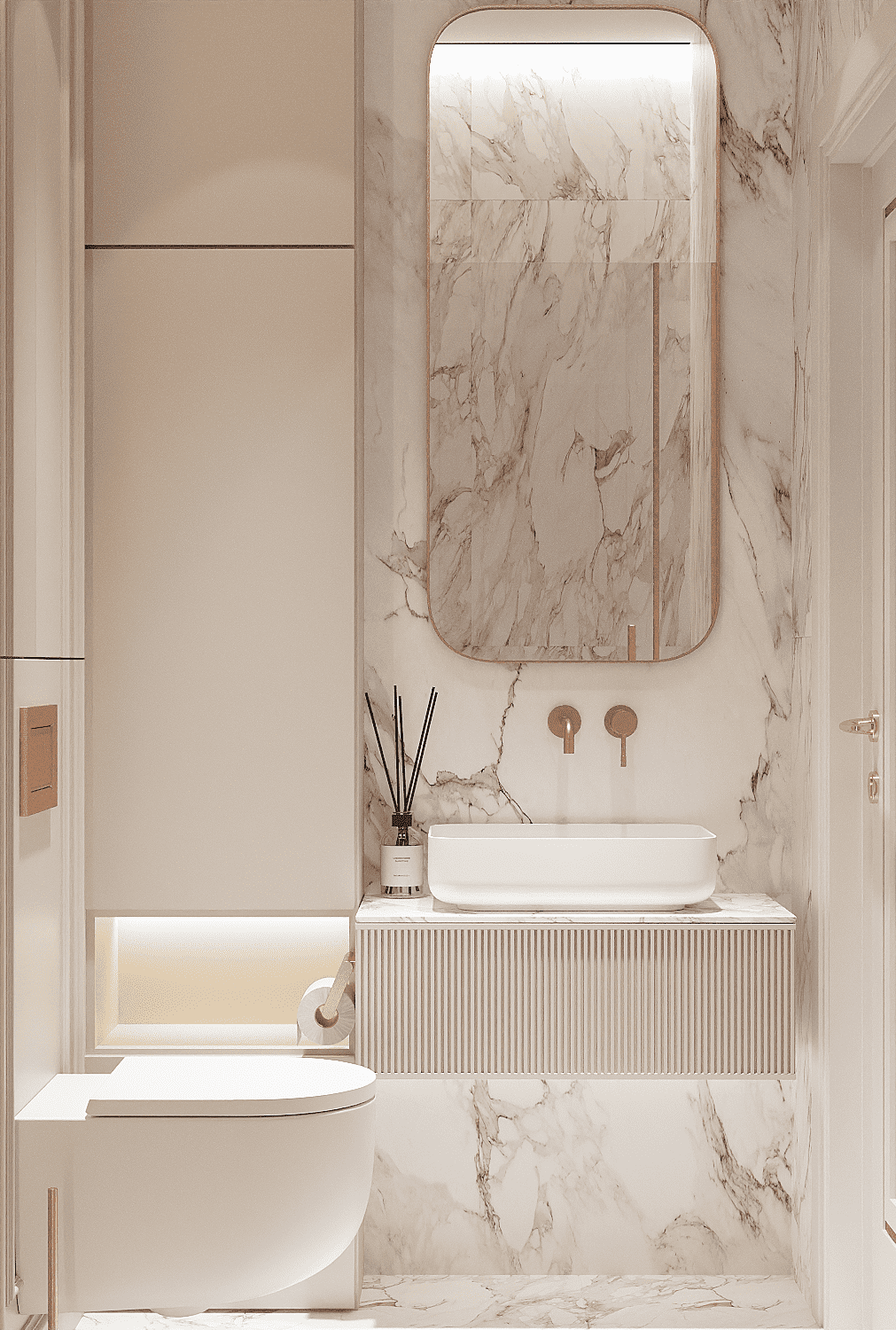 Aranżacja małej łazienki, która pomieści piec, w sposób estetyczny i funkcjonalny, bez naruszania wymogów technicznych dotyczących wentylacji.